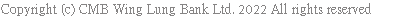 Due to the Bank’s computer system upgrade, certain banking services will be temporarily suspended from 01:00 on 15 March 2026 (Sunday) to 06:00 on 15 March 2026 (Sunday). Those affected banking services include CMB Wing Lung NET Banking Services, CMB Wing Lung SME NET Banking Services, CMB Wing Lung WeChat Banking Services,CMB Wing Lung Bank Mobile App . We apologize for any inconvenience caused. For any enquiries, please call our Customer Services Hotline at 230 95555.